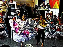 The traditional Sanjuanero choreography was created by folklorist Inés García de Durán[4] in 1960 and consists of three basic steps (caminado, bambuqueado, and contradanza), eight basic figures and five or more adornment figures.[2]