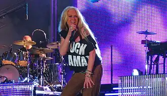 Sanne Salomonsen was a member of Anne Linnet Band and Sneakers, and got the nickname Rock Mama as an enduring pop icon in Danish rock music.[5] She thought at age 31 around the time she got the nickname from a journalist: "When I heard that piece of music [from OneTwo], I thought that now, I have become a mom for a generation in rock music."[6] She said in 2011: "I am always asked what I think about being called Rock Mama, but when I look around on the Danish scene then, I can after all clearly see, that if there is a rock mama then, it is me. That is how it is."[7]
