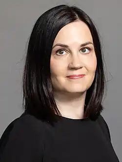 Sanni Grahn-Laasonen (born 4 May 1983) is a Finnish politician and a member of the National Coalition Party. She was the Minister of Education and Culture 2015-2019.[1] She was the Minister of the Environment in Alexander Stubb's cabinet between 2014 and 2015.[2] Before her career in politics she has worked as a journalist in the Finnish afternoon newspaper Iltalehti.