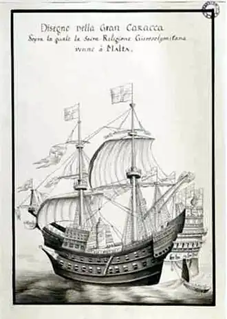 Temporarily, the carrack was also employed as a wheat freighter, with an impressive capacity of up to 900 tons.[1] Only eighteen years after her launch, Santa Anna was stripped and abandoned in 1540 on the order of Grand Master Juan de Homedes y Coscon.[2]