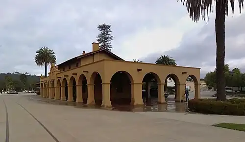 The station was built in 1902 by the Southern Pacific Railroad in the Spanish Mission Revival Style. Design work was by Santa Barbara architect Francis W. Wilson.[5] It is located within walking distance of Santa Barbara Harbor, Stearns Wharf and State Street, Santa Barbara's main thoroughfare. The historic depot was renovated in 2000; the project included the restoration of the ticket office and upgrades to the plumbing, electrical and heating and cooling systems.[6]