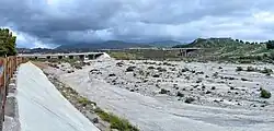 The Harbor Boulevard bridge, the most westerly crossing, marks the upstream boundary of McGrath State Beach and the Ventura Water Reclamation Facility while the estuary continues a little farther upstream. In 1969 the river breached the north bank, flowed through an area that had historical been part of the estuary, flooded a new golf course and Harbor Boulevard, and deposited silt and debris into recently completed Ventura Harbor just upcoast from the reclamation facility.[29][30]