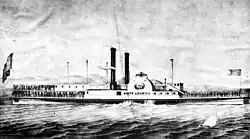 - ^ At this time in the United States, a sidewheel steamer's beam was usually measured across the hull only, rather than across the hull, paddlewheels and guards.[4]