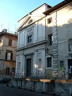Santa Croce alla Lungara is a church in Rome (Italy), in the Rione Trastevere, facing on Via della Lungara. It is also called Santa Croce delle Scalette', due to the presence of a double flight of stairs (Italian: scale) giving access from the street; or Buon Pastore, since in the 19th century the church and the annexed cloister were entrusted to the Sisters of the Good Shepherd of Angers.