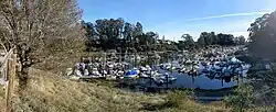 The Santa Cruz Small Craft Harbor (also "Santa Cruz Harbor", but see below) is situated in Santa Cruz, California, on the site of the former Woods Lagoon. Built in 1962–1963, its public use specializes in boating and extracurricular marine activities for the local community and visitors.[1] The harbor straddles the city limits which runs down the center of Arana Gulch; the west side of the harbor is in Santa Cruz's Seabright neighborhood while the east is in unincorporated Santa Cruz County.