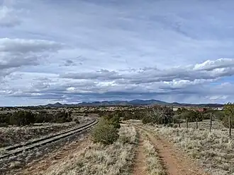 The Santa Fe Rail Trail is a multi-use trail, part of the trail system in the city of Santa Fe, New Mexico. The trail begins at the Santa Fe Depot, in the Railyard arts district, and ends at U.S. Route 285, near Lamy, New Mexico and the Lamy station. An example of Rails with trails, it parallels the New Mexico Rail Runner Express tracks to roughly I-25, where it then continues along the Santa Fe Southern Railway. The Santa Fe Rail trail is 15 miles long, is asphalted for the first 3.5 miles, and improved natural surface for 11.5 miles. The last few miles between Eldorado and US-285 is unimproved natural surface.