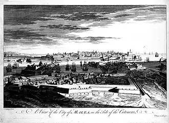 The foundation stone of the Santa Margherita Lines was laid on 30 December 1638 by Grand Master Giovanni Paolo Lascaris. The lines were designed by Vincenzo Maculano da Firenzuola, and were meant to protect the land fronts of Birgu and Senglea, and also to prevent a flanking attack on the capital Valletta.[5][6] The lines were built on Santa Margherita Hill, known colloquially as il-Mandra,[6] possibly on the ruins of an ancient Greek temple or an earlier castle.[5] The hill is featured in the account of the Great Siege of 1565 by arquebusier Francesco Balbi di Corregio, who mentioned that a belvedere existed on it.