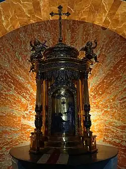 The most recent chapel in the cathedral, inaugurated on June 29, 2006, contains a tabernacle donated by Pope Leo XIII, a work from 1887 by Rosario Pennisi, an artist from Acireale. An identical copy of this tabernacle is located in the Church of San Pietro in Acireale. On the left wall is a plaque commemorating this event. The then-Bishop Monsignor Giovanni Guttadauro, in gratitude to the pontiff, organized a pilgrimage and offered gifts to His Holiness. This pilgrimage was led by the bishop's nephew, Monsignor Giuseppe Francica-Nava. The chapel also contains five paintings by unknown artists. It was once dedicated to the Madonna of the Mountains.[20]