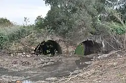 Of great interest is the semicircular fishpond, now visible only from an aerial view and at low tide, of which two or three tanks, which have remained intact, are connected to the outside with a series of small rectangular tanks arranged in a ring communicating with each other. A bronze portcullis from this fishpond is now conserved in museum of Pyrgi.