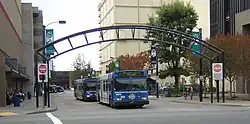 The Santa Rosa Transit Mall is a major transfer point for several bus routes serving the city of Santa Rosa, California, located in Sonoma County, north of San Francisco, in the United States. From the Transit Mall, passengers can travel throughout Santa Rosa and Sonoma County, plus destinations that connect the city with the rest of the San Francisco Bay Area and the Redwood Empire.