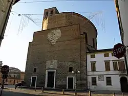 After an earthquake in 1688 damaged the church, and a complete reconstruction was promoted by the town archpriest Marco Marchetti, using designs for an elliptical nave with a tall cupola, by the Venetian architect Antonio Gaspari. Work begun in 1690 with the blessing of the bishop Gregorio Barbarigo, and was completed in 1720 with consecration by Cardinal Rezzonico, the future Pope Clement XIII. The facade was never completed, and remains in rough brick. The lower part of the bell-tower dates to the 8th century, but it was raised to its present height in 1724 by the architect Rossi.[1]