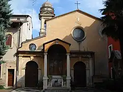 A church at the site affiliated with the Benedictine order was established in the 11th century, and was adjacent to a cemetery. It was titled then Santo Sepolcro. In 1178 it was linked to the Knights Hospitaller. In 1342, they acquired the relics of Santa Toscana which were placed in an ark atop the main altar. The church was expanded, rebuilt and reconsecrated by 1489.[1] The church suffered bombardment during World War II.