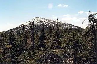 Santanoni Peak is a mountain located in the Santanoni Range of the Adirondacks in the U.S. state of New York. It is the fourteenth-highest peak in New York, with an elevation of 4,607 ft (1,404 m), and one of the 46 High Peaks in Adirondack Park. It is located in the town of Newcomb in Essex County. Santanoni Peak is flanked to the north by Panther Peak and to the northwest by Couchsachraga Peak, the other two mountains of the Santanoni Range.[5] The mountain's name is believed to be an Abenaki derivative of "Saint Anthony"; the first French fur traders and missionaries having named the area for Saint Anthony of Padua. The name first appeared in print in 1838, but may have been used much earlier. The earliest recorded ascent of the mountain was made in 1866 by artist and writer Theodore R. Davis and mountain guide Dave Hunter.[4]