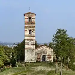 The Church of Saints Nazarius and Celsus (Italian: Chiesa dei Santi Nazario e Celso) is a Catholic church near Montechiaro d'Asti, Italy. It is located on the side of a hill called Bric San Nazario and is easily visible in the countryside thanks to its tall bell tower and the chromatic effect due to the alternating stripes of bricks and sandstone. It is an important example of the Romanesque architecture of Montferrat.[1]