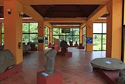 The municipality is home to three colossal Olmec head and the Tres Zapotes Museum/Archeological Site .[1] This site was occupied from about 900 BCE to somewhere between 400 and 300 BCE, contemporary with La Venta in Tabasco. It is centered on a hill used to astronomical observations and mathematical calculations related to the Olmec calendar system .[1] The site is named after the community of Tres Zapotes, 21 km from the city of Santiago Tuxtla. Originally the land was part of the Hueyapan de Mimendi Hacienda, dedicated to the growing of zapote fruit.[4] The site was opened to the public in 1974, focusing on the site museum which contains a number of important artifacts.[1]