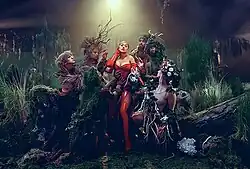 Rolling Stone's Tomás Mier opined that Aguilera and Ozuna "channel Adam and Eve's wild side" in the music video, and thought that its scenery resembles "dark Garden of Eden".[10] Albert Nowicki of Prime News observed that the video looks "like a cross between Missy Elliott's 'Get Ur Freak On' and Backstreet Boys' 'Everybody'".[44] An alternate music video for "Santo" — featuring Aguilera and Ozuna in a purple-tinted forest — was released on June 15, 2022.[45]