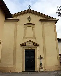 Santo Stefano a Pozzolatico is a Roman Catholic church on Via di Riboia #3 in the neighborhood of Pozzolatico within the town limits of Impruneta, but just north of the Autostrade del Sole circumvaling Florence, and in the province encompassed by the metropolitan city of Florence, region of Tuscany, Italy.