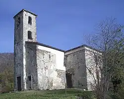 The church Santo Stefano di Sessano is all that remains of the village of Sessano, located on the rocky foreland to the east of the village of Chiaverano, which may have been abandoned after a landslide.