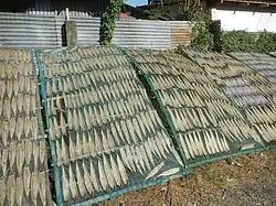 The barangay of Damortis is known as the 'Tabo-an of the North’ because of its priceless 'danggit' (often associated with the small malaga), the dalag-baybay, espada, sapsap, pusit, turay, dilis, and shrimp, a local fish, 1 foot basasong, dried bangus (milkfish), patis (fish sauce), alamang, and bagoong.[46]