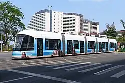 Sanya's tram service began trial operation on 7 January 2019.[19] Trams are composed of five carriages with a maximum seating capacity of 362 people. In built up and urbanised areas, the maximum speed of the tram is 50 km/h. The current tram route begins at Sanya Railway Station and finishes at Jiangang Road Station, which is currently the southernmost railway station in China. Full operation of the first line started on 10 October 2020.
