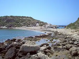Saplı Islet (Turkish: Saplı Ada, meaning "Island with a handle", also called Boynuince Islet) is a Mediterranean tombolo of Turkey. The island is at the Yenikaş coast which is located 4 kilometres (2.5 mi) west of Aydıncık ilçe (district) of Mersin Province. At 36°07′48″N 33°17′41″E / 36.13000°N 33.29472°E it forms the west wall of the bay named Soğuksu. Its distance to Mersin is about 177 kilometres (110 mi)