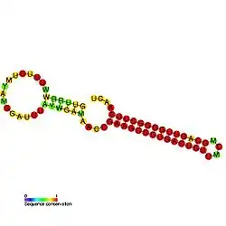 Sar RNA is an antisense non-coding RNA that is partly responsible for the negative regulation of antirepressor synthesis during development of bacteriophage P22.[1] The target of Sar RNA is ant mRNA. Structurally, Sar RNA forms two stem-loops.[1]