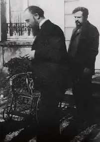 Unlike the Gymnopédies and the earlier piano suite Ogives (1886), which he published at his own expense in the late 1880s, Satie initially chose not to promote the intermediate Sarabandes. He did not keep them a secret from his intimates, however. They were the probable model for his friend Claude Debussy's Sarabande, composed in 1894 and revised before its inclusion in the set Pour le piano (1901).[34][35][36] In an article on his brother's music for the June 1895 issue of the esoteric religious journal Le coeur, Conrad Satie referred to the unpublished Sarabandes as the "works of a mystic pagan, and which give a foretaste of the Catholic who was to write the Danses gothiques."[37] Maurice Ravel, who first met Satie in 1893, knew of the pieces and spoke highly of them to members of his circle. In 1905 Ravel introduced critic Michel-Dimitri Calvocoressi to Satie, who showed him the manuscript of the Sarabandes. Calvocoressi later declared, "I promptly saw the truth in Ravel's assertion that Satie's music contained the germ of many things in the modern developments of music."[38]