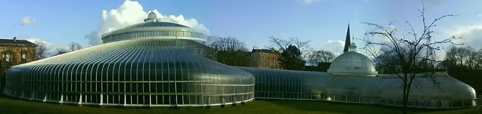 In the 1860s, John Kibble designed a conservatory for his home at Coulport on Loch Long. However, after production at the Saracen Foundry, it was shipped up the River Clyde by barge to the Glasgow Botanic Gardens, and fully erected at its current location in 1873 by Boyd of Paisley. The Kibble Palace building structure is of curved wrought iron and glass supported by cast iron beams resting on ornate columns, surmounted on masonry foundations. It was initially used as an exhibition and concert venue, before being used for growing plants from the 1880s. Benjamin Disraeli and William Ewart Gladstone were both installed as rectors of the University of Glasgow in the palace, in 1873 and 1879 respectively - its last use as a public events venue, before becoming wholly used for the cultivation of temperate plants. The main plant group is the collection of Australian tree ferns, some of which have lived here for 120 years. In 2004 a £7 million restoration programme was initiated, which involved the complete dismantling of the Palace, and the removal of the parts to Shafton, South Yorkshire for specialised repair and conservation.[6]