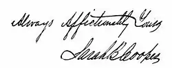 While in Augusta in 1855, she married Halsey Fenimore Cooper, also a Cazenovia Seminary graduate,[3] who had been appointed by President Franklin Pierce to the office of surveyor and inspector of the port of Chattanooga, Tennessee. They also worked as editors on The Advertiser, with Mrs. Cooper assisting Mr. Cooper. They had two daughters, Harriet ("Hattie") (b. 1856) and Mollie (b. 1861), as well as two sons, who died in infancy.[2]