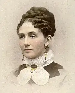 Sarah Brown Ingersoll was born in Cazenovia, New York, December 12, 1835.[a] She had two younger sisters who became Mrs. J. A. Skilton and Mrs. Reese M. Rawlings.[7] Her mother died when she was a little child, and she was adopted by her great-aunt, over 70 years of age.[2] Col. Robert G. Ingersoll was a cousin.[4][8]