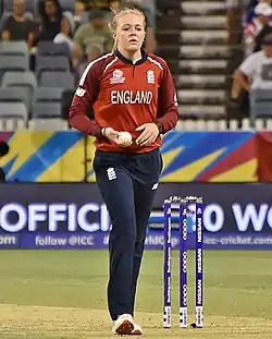 In November 2019, she was named in England's squads for their series against Pakistan in Malaysia.[20][21] She made her Women's One Day International (WODI) debut for England, against Pakistan, on 9 December 2019, in which she took two wickets, including the winning wicket.[22] She took 8 wickets in the three-game series, including 4/18 in the 3rd ODI.[23] She made her Women's Twenty20 International (WT20I) for England, also against Pakistan, on 17 December 2019, taking one wicket.[24] At the conclusion of the two series, she was singled out for special praise by her captain, Heather Knight, who said that "[s]he definitely deserved to be player of the series in the ODIs."[25]
