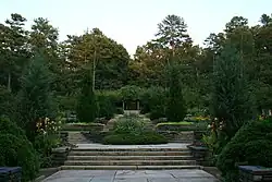 The Sarah P. Duke Gardens consist of approximately 55 acres (22 ha) of landscaped and wooded areas at Duke University located in Durham, North Carolina. There are 5 miles (8 km) of allées, walks, and pathways throughout the gardens. The gardens are divided into four areas, the Historic Core and Terraces, the H.L Blomquist Garden of Native Plants, the William Louis Culberson Asiatic Arboretum and the Doris Duke Center Gardens (including the Page-Rollins White Garden). The gardens are a memorial to Sarah Pearson Angier Duke, mother of Mary Duke Biddle and wife of Benjamin N. Duke, one of Duke University's benefactors.