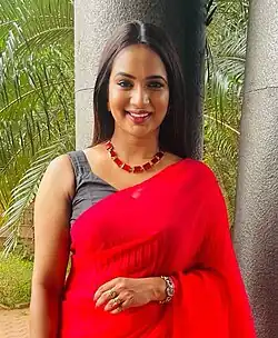 Saranya Anand is an Indian actress who works in Malayalam cinema and television. She appeared as Vedikha in the Asianet drama series Kudumbavilakku.[2][3][4] She also appeared in the films Chunkzz, Garudan and "Mamangam". She participated in the dance competition Dancing Stars on Asianet.[5]