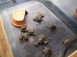 In 1997, Saratoga NFH began breeding Wyoming toads as refugia and for future reintroduction efforts. It was the first in the NFHS to use its resources to raise endangered amphibians.[5] It has since supplied hundreds of adult toads to Mortenson Lake National Wildlife Refuge and other locations for reintroduction, including more than 900 adult toads in a single release in June 2016.[9]