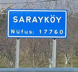 Sarayköy is a municipality and district of Denizli Province, Turkey.[2] Its area is 379 km2,[3] and its population is 30,834 (2022).[1] It is 20 km west of the city of Denizli, on a plain between mountains and watered by Büyük Menderes River.