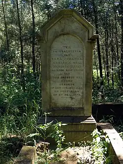 She is buried in an unmarked grave in the Memoriam-begraafplaas (memorium burying place) by the Vrouemonument (woman's monument)