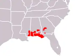 It inhabits moist and low-nutrient longleaf pine (Pinus palustris) savannas, primarily along the United States Gulf Coast, and generally west of the Apalachicola River on the Florida Panhandle. It is also found in Alabama, Georgia, Louisiana, Mississippi, and North Carolina.[4]