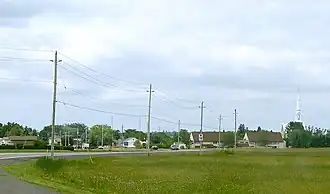 The first residents of Sarsfield were mostly French-Canadians from Lower Canada. In 1854, families began to establish in the Sarsfield region. Family names at that time included: Potvin, St-Denis, D'Aoust, Lafrance, Dessaint and Ethier. One of these colonizers, Sévère D'Aoust, bought land from the Crown and later gave part of this land for the construction of a Roman Catholic church. The construction of the church had such an impact on the village that it was known as Daoust's Corner. The region was also known as Bear Brook. Construction for the new church was completed in 1886. The church celebrated its 125th anniversary in 2011. In June 2011, strong winds and intense lightning caused the churches's steeple to fall off. It was replaced a few months later. It was destroyed a second time after the May 2022 Canadian derecho[2][3]