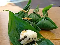 This species is often planted in gardens as ornamental ground cover. The leaves can be used to make herbal tea, and are traditionally ground up and taken as a folk remedy for diabetes and hypertension, although there is no scientific consensus on its efficacy as a medicine.[5] In Ishikawa, Nagano, and Niigata prefectures, the leaves are used as wrapping for regional varieties of sushi and rice dumplings. It also has some uses as a textile, for example in the manufacture of absorbent floor mats.[6]