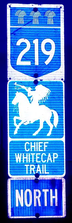 Highway 219 starts at Highway 44 near Danielson Provincial Park[2] and Cutbank and travels north, passing through the hamlet of Glenside, intersecting Highway 15 east of the town of Outlook, before passing through Whitecap Dakota First Nation. North of the First Nation, the highway passes through bedroom communities of Grasswood and Furdale before entering Saskatoon as Lorne Avenue. It intersects Circle Drive before ending at Idylwyld Drive.[3]