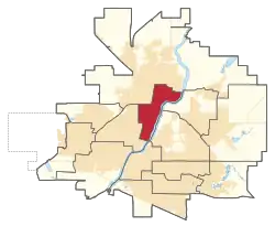 1. ^ Population calculated by combining Census Tracts 0021.02, 0015.00, 0021.01 (south of Circle Drive) and 0008.00 (north of 24th St E).