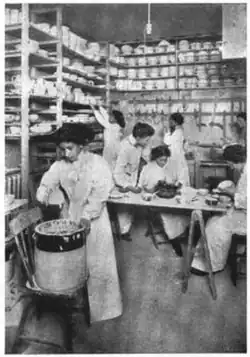 The pottery was more than an arts and crafts project designed to keep young women off the streets; it provided them with decent jobs. Working conditions at the pottery were better than the women could have expected elsewhere: they worked an eight-hour day and received a fair wage, daily hot lunches, and a yearly paid vacation. The pottery flourished for several decades, garnering national and international recognition through features in magazines, journals, and newsletters.[28] It closed its doors in 1942.[2][29] Paul Revere wares are now valuable collectors' items.[30][27]