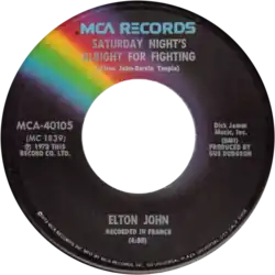 "Saturday Night's Alright for Fighting" (sometimes written "Saturday Night's Alright (For Fighting)") is a song originally recorded by English musician Elton John. John composed it with his long-time songwriting partner Bernie Taupin. It was released on John's best-selling album Goodbye Yellow Brick Road (1973) and as the first single. It has been covered by many artists and featured on motion picture, video game, and television soundtracks.