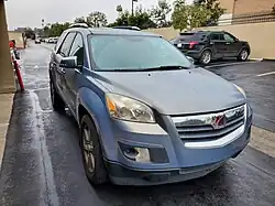 The Saturn Outlook is a full-size crossover SUV that debuted at the New York International Auto Show, and was based on the GM Lambda platform, which it shared with the Buick Enclave, Chevrolet Traverse and GMC Acadia. The Outlook went on sale in 2006 as a 2007 model. The Outlook featured the lowest sticker price among GM's Lambda crossover SUVs, slotting below the GMC Acadia and Buick Enclave. The Chevrolet Traverse would ultimately take the place of the Outlook as the family-oriented model following the introduction of the Traverse for the 2009 model year, and the demise of the Outlook, along with the entire Saturn brand in 2010, with the 2011 model year having several hundred models built to use up extra parts.