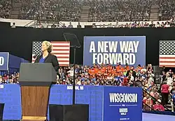 Rhodes-Conway's campaign focused on a short list of issues, including bringing bus rapid transit to Madison, increasing the supply of affordable housing, combatting climate change, and promoting racial equity.[23] During the primary, Rhodes-Conway's support came largely from the Isthmus and neighboring wards.[24][25] Debates between Rhodes-Conway and Soglin covered a number of topics,[26][27] including affordable housing,[28] the municipal economy,[29] public safety, and policing.[30] Rhodes-Conway won support from Wisconsin State Assemblywoman Terese Berceau and Dane County Executive Joe Parisi.[31][32] She was subsequently endorsed by the Wisconsin State Journal editorial board,[33] The Capital Times,[34] and The Daily Cardinal.[35] Throughout the campaign, Rhodes-Conway raised more money than Soglin,[36] and spent more on expenditures.[37][38] Milwaukee County Executive Chris Abele spent $47,000 on mailings supportive of Rhodes-Conway's mayoral bid, an amount described by the Wisconsin State Journal as "unusual, if not unprecedented," due to its origin outside of Dane County.[39]