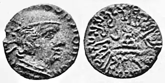 - ^ Rapson, E. J. (Edward James) (1908). Catalogue of the coins of the Andhra dynasty, the Western Ksatrapas, the Traikutaka dynasty, and the "Bodhi" dynasty. London : Printed by order of the Trustees. p. 95.