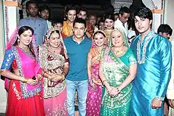 The teasers of the show were premiered on YouTube on 2 April 2012.[32] The makers of show booked around 2,000 slots for the broadcaster's promos in 27 hours for an amount of ₹62.5 million (US$740,000). Reportedly, this was the highest costing promotional campaign for any Indian television show.[33][34] Besides, the show was also promoted in Indian theaters. The theme song of the show was shown in 300 theaters across the country after the national anthem. In addition, interactive sessions were organized with audiences about the show in selected multiplexes of Mumbai and New Delhi. The responses of the audience were recorded and shown on screen during movie intervals. B. V. Rao of Aamir Khan Productions, claimed that "This is the first time that a TV show is being promoted in cinema halls."[35] On 3 May 2012, Khan appeared on the daily soap Diya Aur Baati Hum, aired on Star Plus to promote the show.[36]