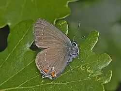 Satyrium ilicis, the ilex hairstreak, is a butterfly of the family Lycaenidae. [1]
