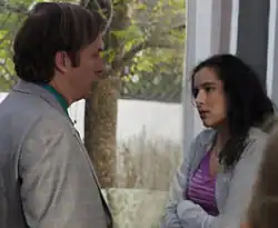 Chuck's attempts to hide his electromagnetic sensitivity during the meeting with Mesa Verde causes him to become severely ill, and his caregiver Ernesto calls Jimmy for help. While Chuck sleeps, Jimmy alters Mesa Verde documents stored at Chuck's house.[41] As a result, Chuck's application to the state banking board for a new Mesa Verde branch is incorrect, leading to a significant delay. Mesa Verde fires HHM and hires Kim, and Chuck suspects that Jimmy sabotaged him. Kim infers Jimmy's guilt and tells him that if he left any evidence, Chuck will find it.[42]