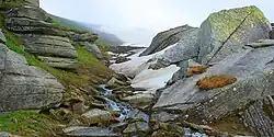 After trekking for about 10 kilometres through the clouds and trekking on snow for the first time, trekkers reach the next camp at Doura Thatch (11,300 feet). The day's trek is a journey through the clouds.